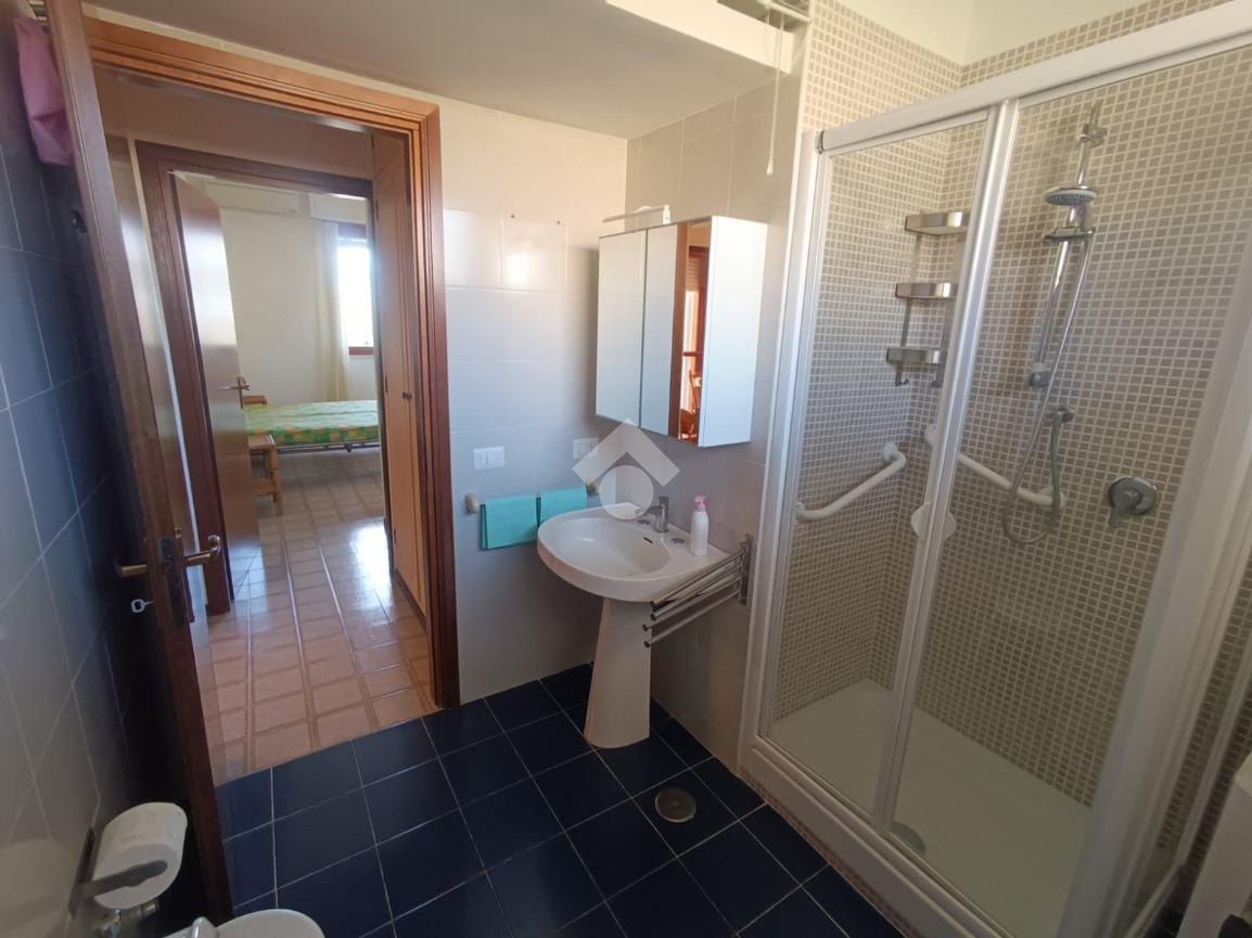 La casa si sviluppa su un unico livello e conta circa 55 mq composti da sala con cucina a vista ed accesso alla terrazza esposta a SUD- EST con anche una discreta vista mare, disimpegno con armadio a muro, bagno finestrato con grande box doccia, camera matrimoniale e una cameretta.