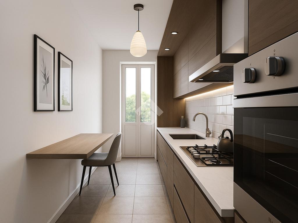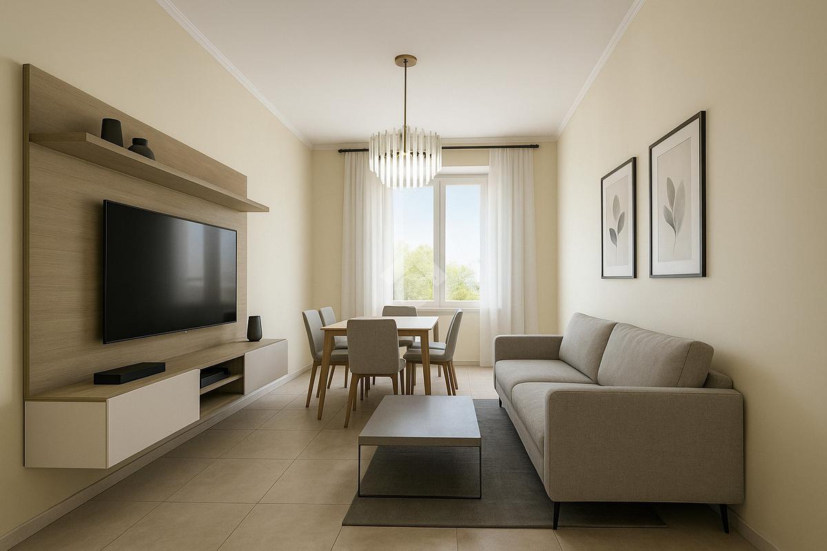 L’ingresso apre la descrizione dell’immobile, da cui si può accedere al luminoso e spazioso soggiorno, una bellissima cucina abitabile ed un bagno finestrato con vasca.
