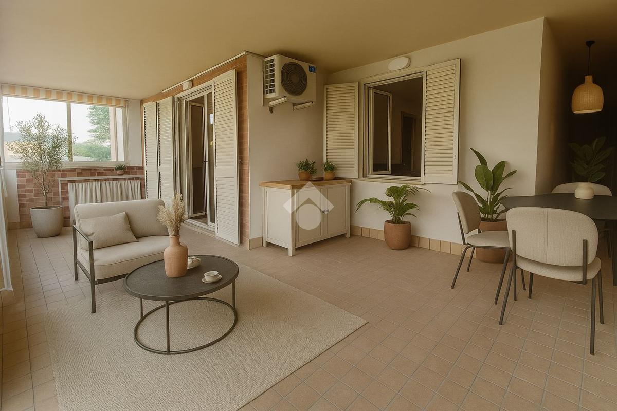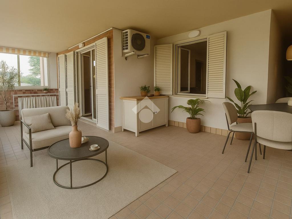 Ciò che fa la differenza è l’ampia terrazza, grande quasi quanto l’appartamento. Terrazza coperta fornita di tende da sole, cucina esterna con lavabo, caldaia e ripostiglio.