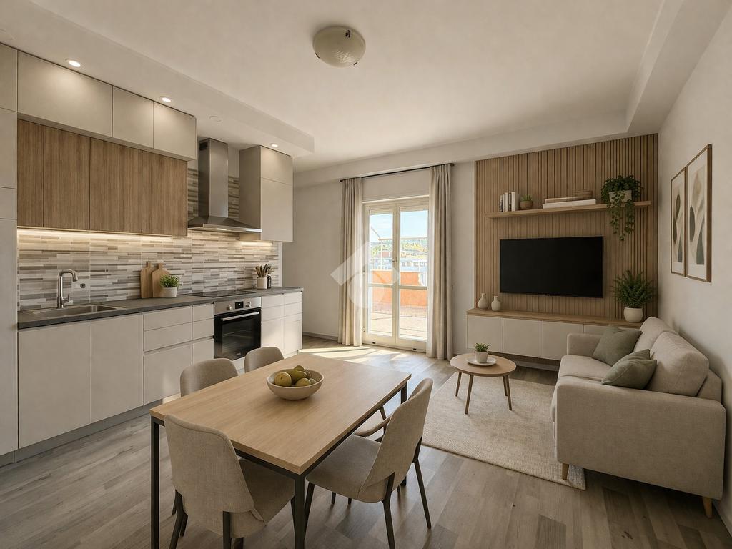 Internamente l’abitazione è composta da un soggiorno spazioso e luminoso con angolo cottura, una cameretta ed infine un bagno finestrato con box doccia.