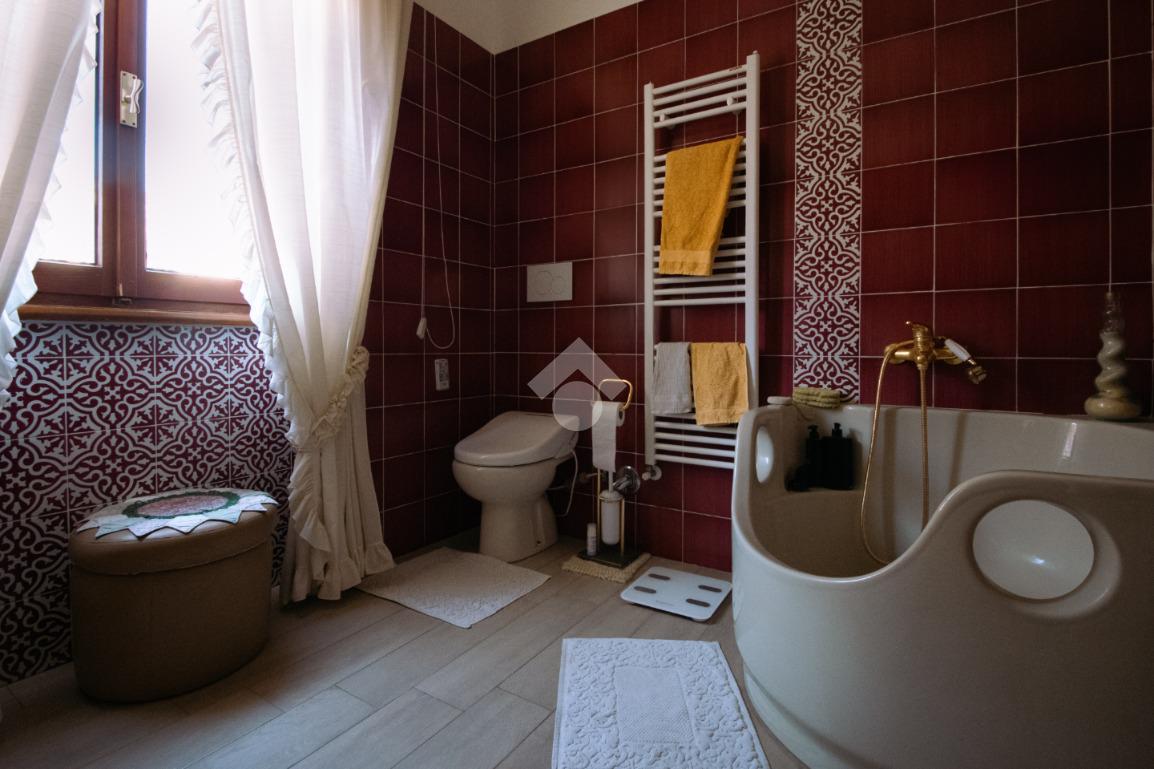 Dal disimpegno si accede a due camere matrimoniali di cui una con bagno privato cieco e box doccia, una cameretta e un bagno principale finestrato con vasca, con rivestimento in marmo firmato “Valentino” e rifiniture in oro zecchino.