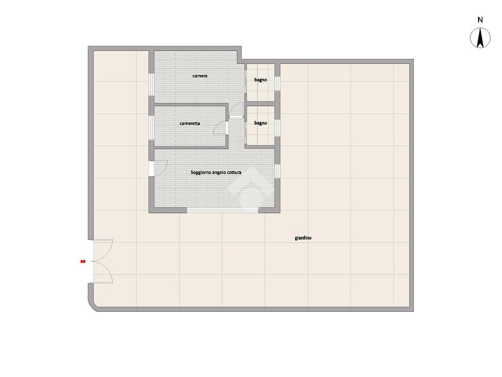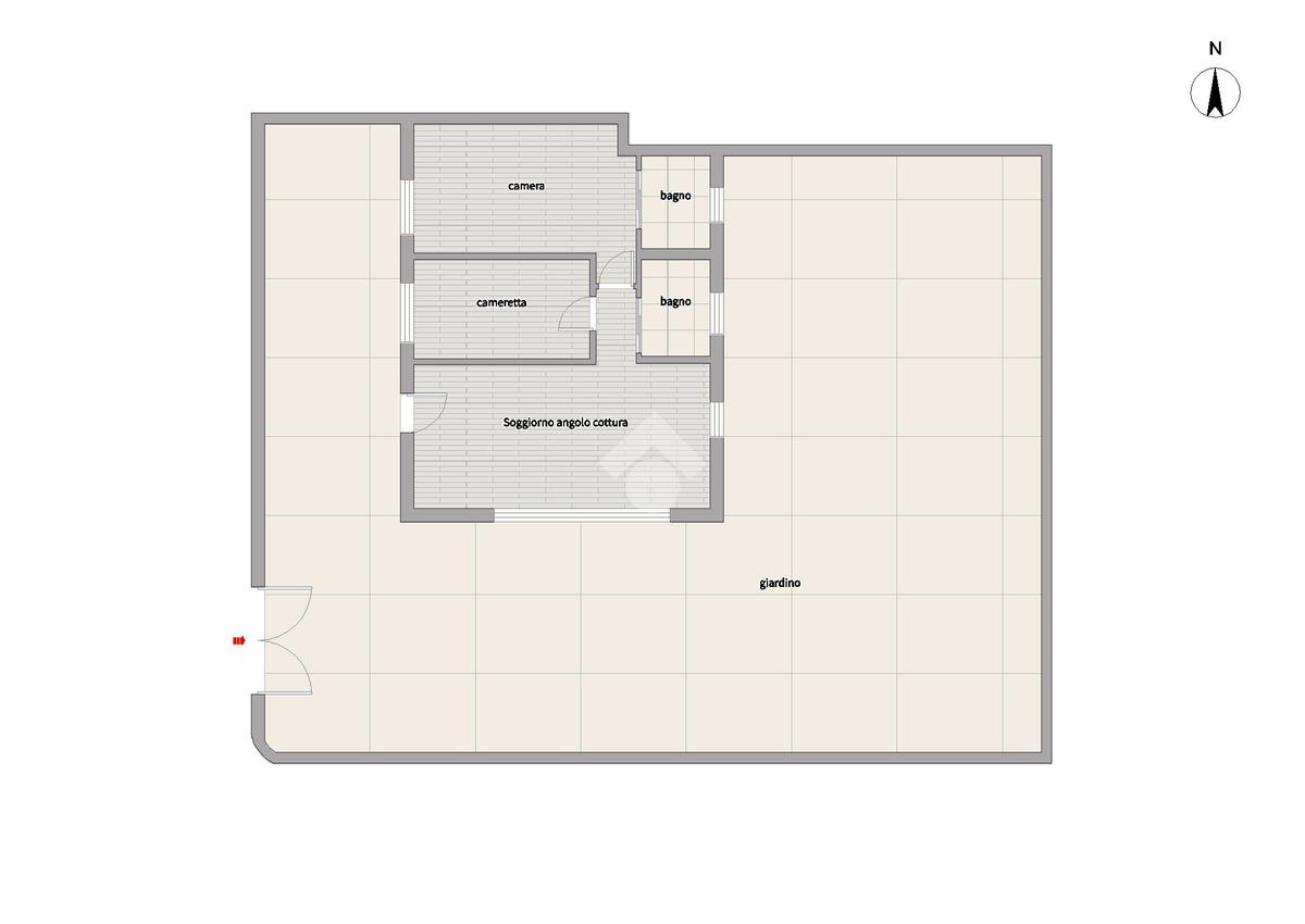 La proprietà è circondata da un ampio giardino privato di circa 200 mq ideale per rilassarsi e godere del sole e della natura, tra pratino e portico. Quest’ultimo è dotato di tende elettriche a led, perfetto per avere privacy durante pranzi e cene all’esterno.