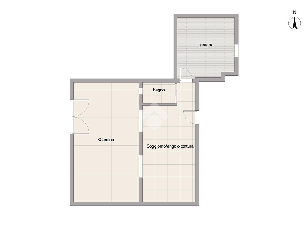 Completa la proprietà un posto auto, che grazie alla sua grandezza attualmente è utilizzato come giardino pavimentato da cui si accede dall'ampio e luminoso soggiorno.