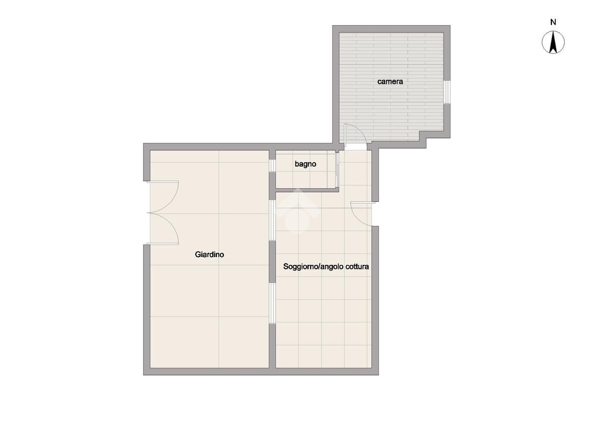 L'interno è composto da un soggiorno con predisposizione per l'angolo cottura, bagno con box doccia finestrato ed una camera matrimoniale con accesso ad uno spazio esterno dove troviamo armadi in alluminio e PWC, ambiente dedicato alla zona lavanderia.