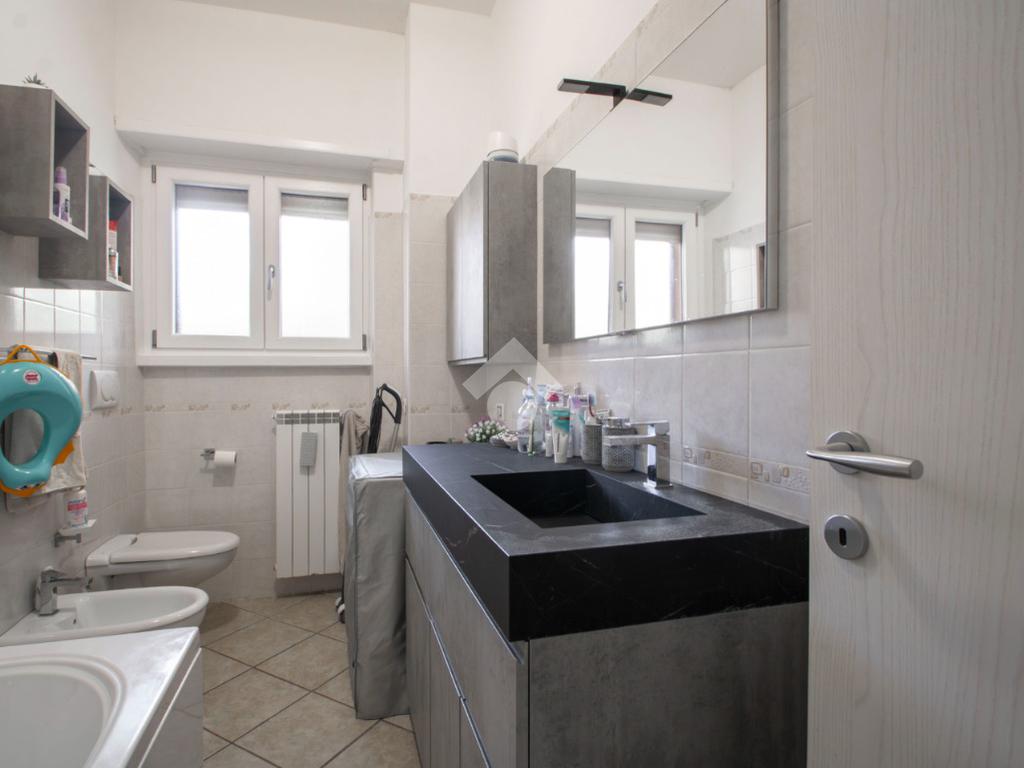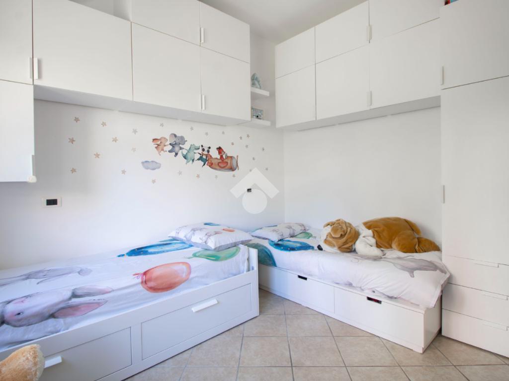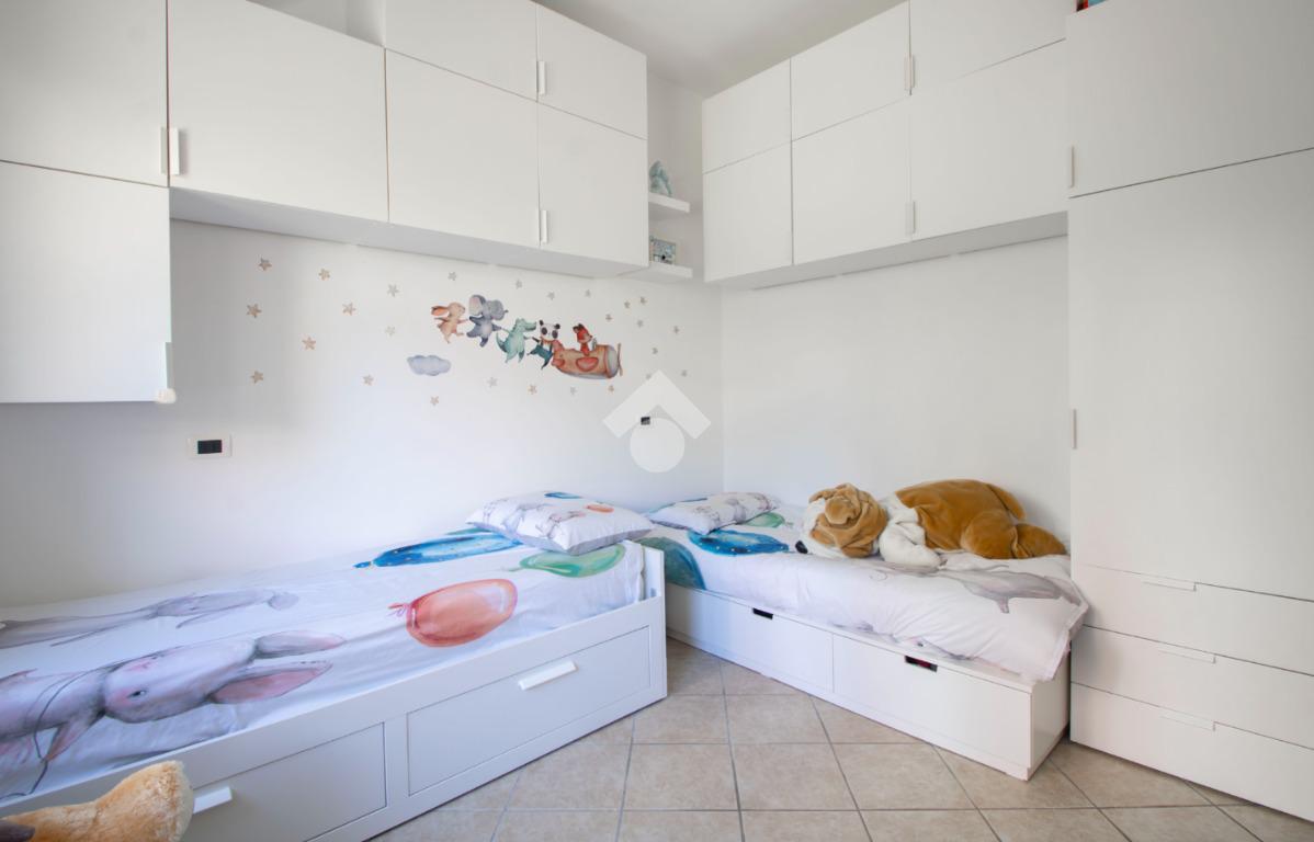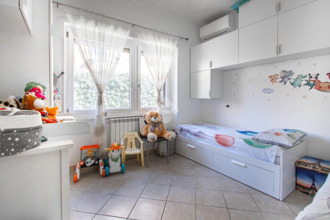 La zona notte offre due spaziose camere matrimoniali, di cui una dotata di balcone proprio e due bagni finestrati: uno con pratico box doccia e l’altro con vasca, pensati per garantire il massimo comfort.