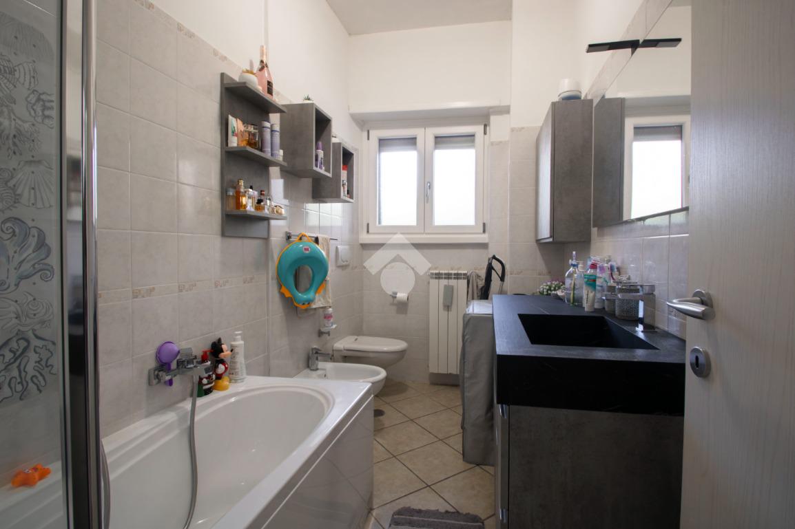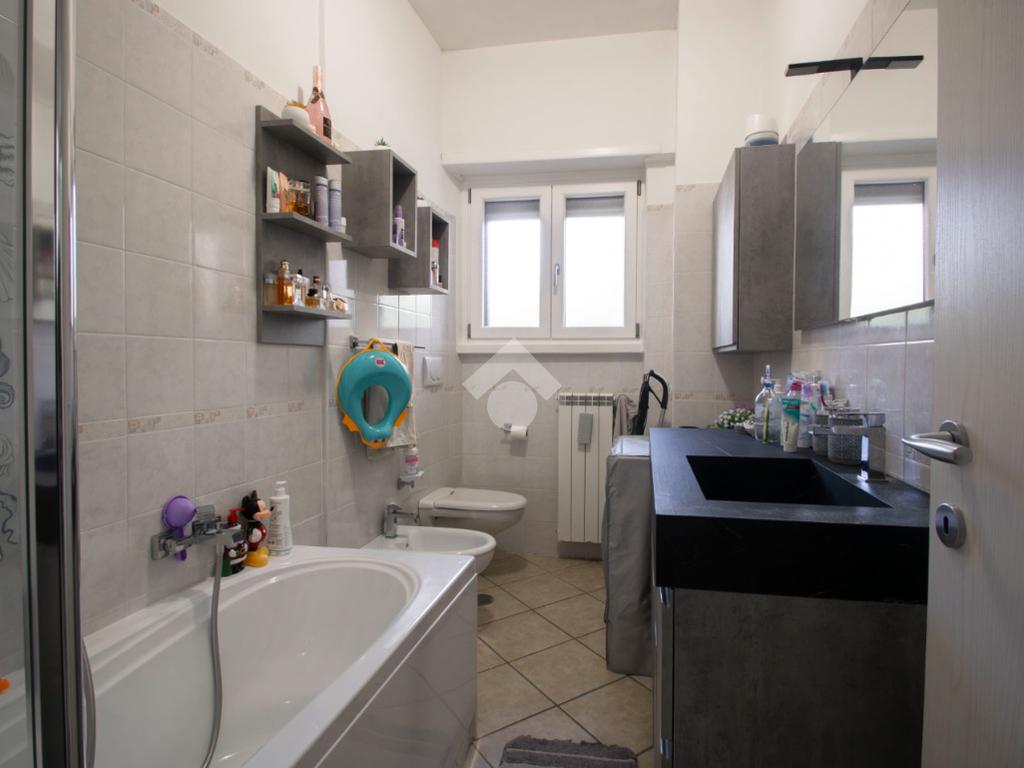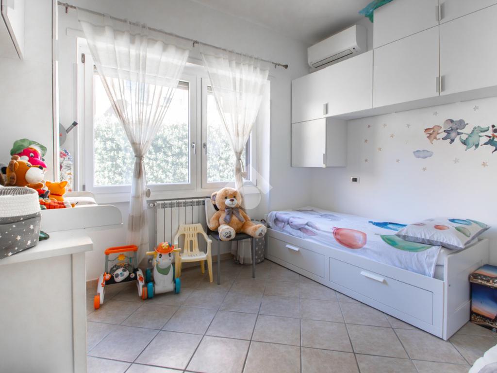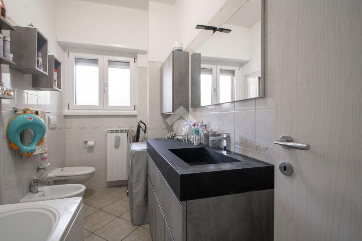 La zona notte offre due spaziose camere matrimoniali, di cui una dotata di balcone proprio e due bagni finestrati: uno con pratico box doccia e l’altro con vasca, pensati per garantire il massimo comfort.