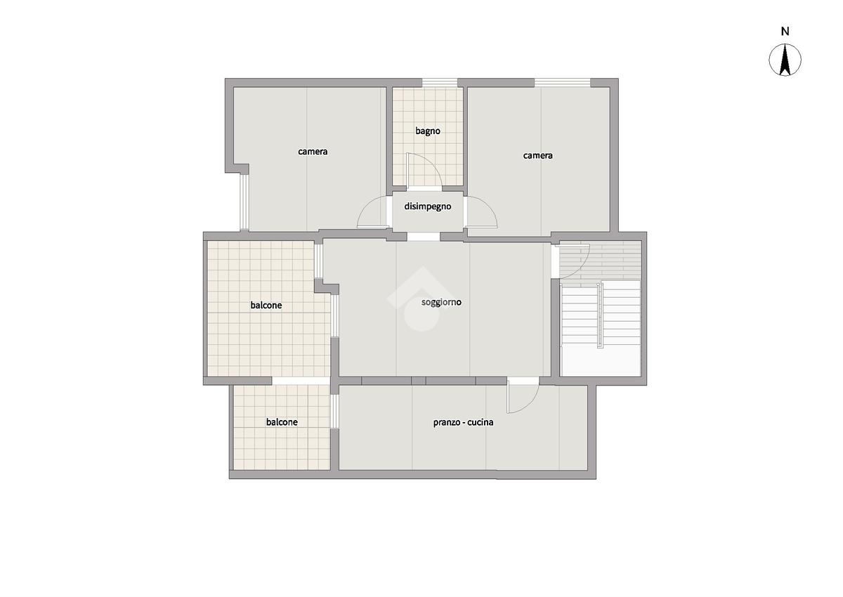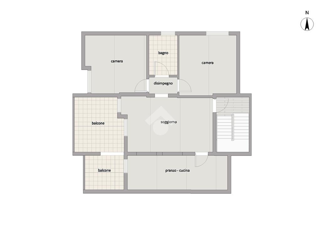 Il primo livello è composto dal salone con camino ed accesso alla terrazza abitabile esposta ad ovest comunicante con la cucina, disimpegno che conduce alla due camere matrimoniali e al bagno finestrato con box doccia.