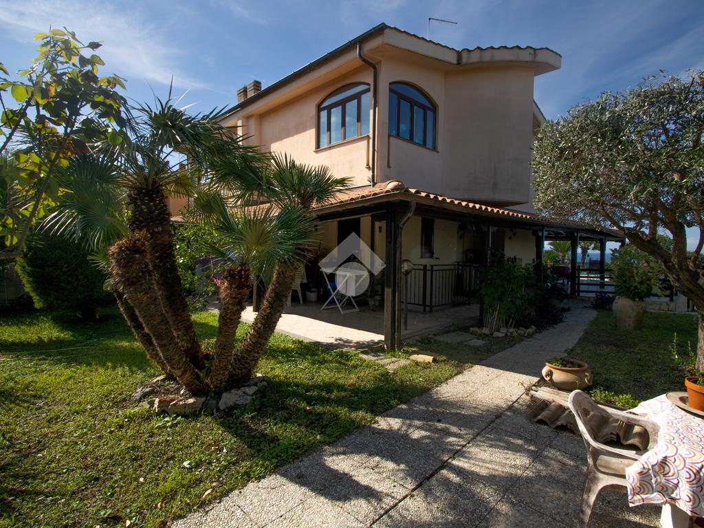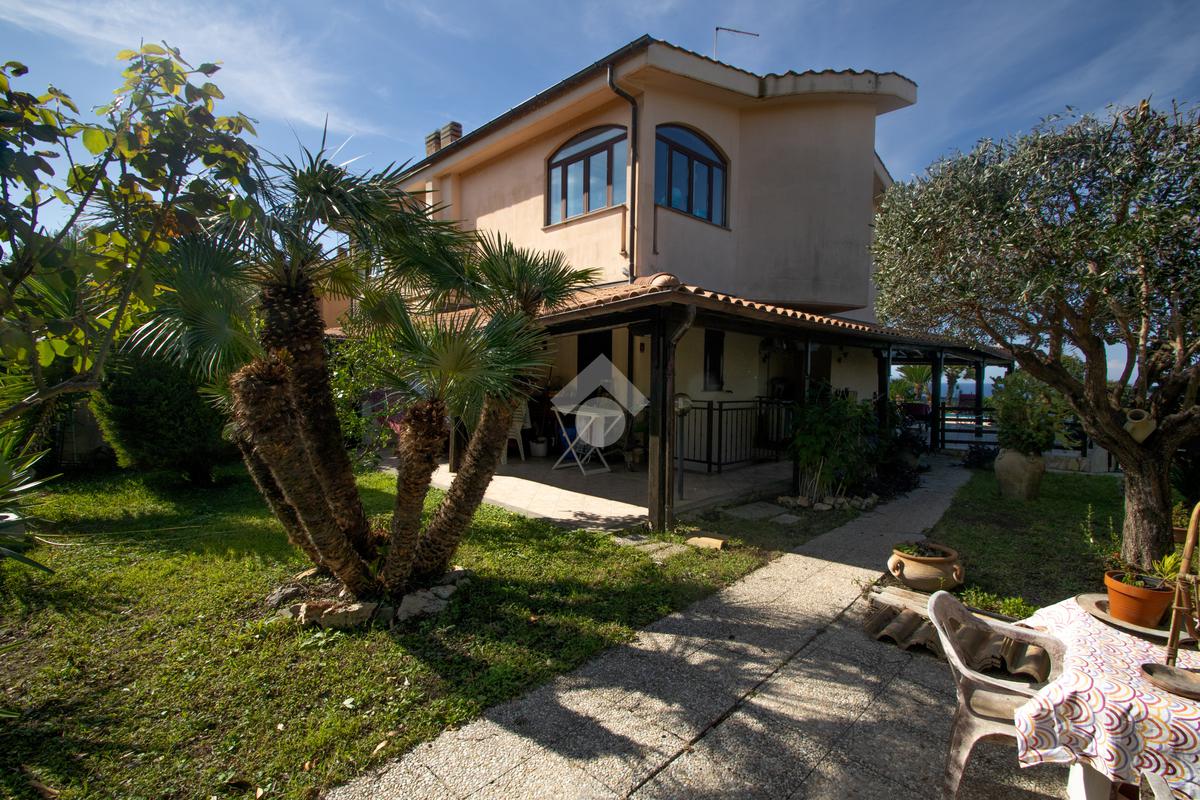 Grande porzione di bifamiliare, panorama impreziosito da tramonti da sogno, giardino angolare con piscina privata in possesso di terreno adiacente di circa 2500mq con cancello carrabile ; ampi spazi interni in ottimo stato di manutenzione e posti auto interni alla proprietà, arricchiscono la presentazione di questa magnifica villa capofila, cielo-terra sita a Prato del Mare, Via Mare Mediterraneo.