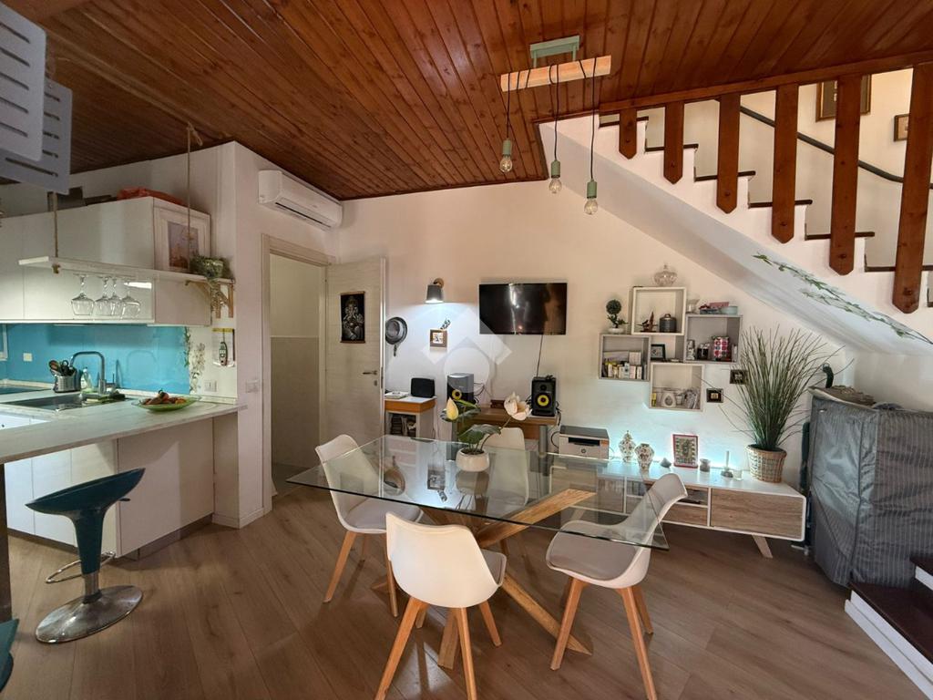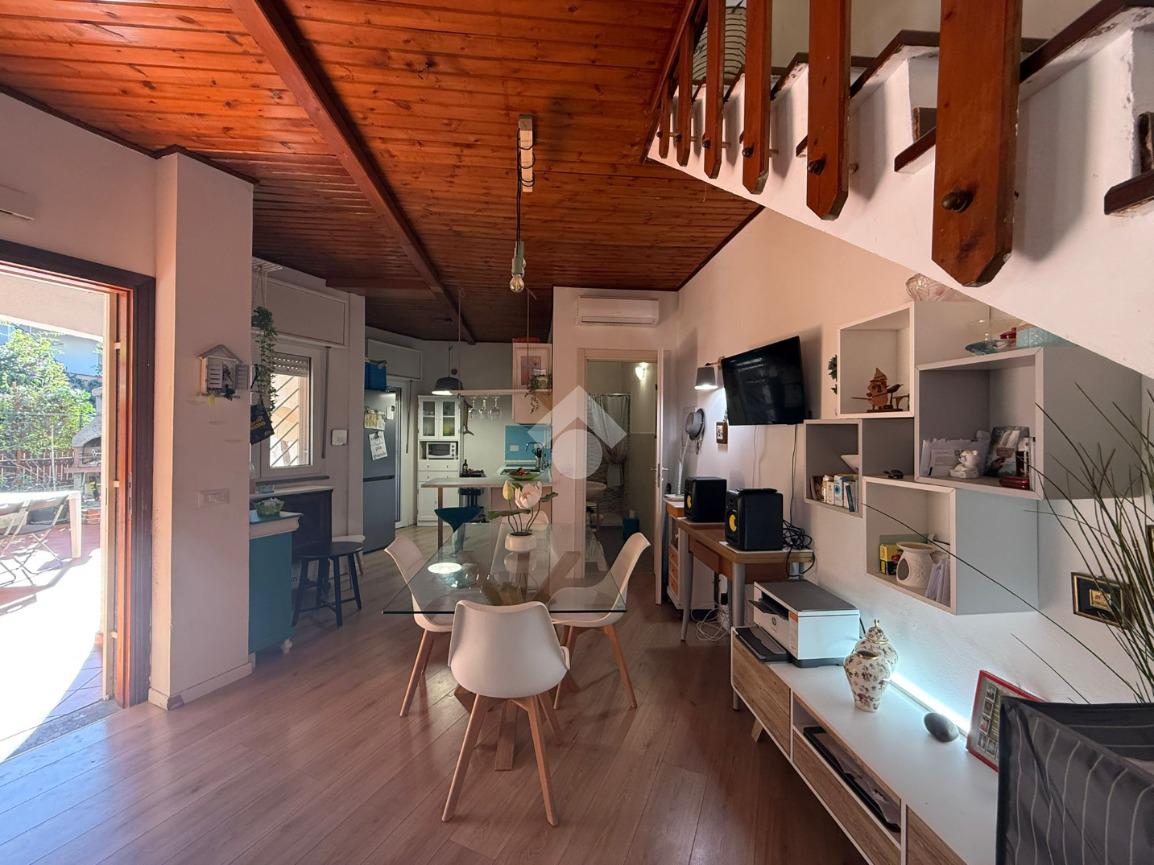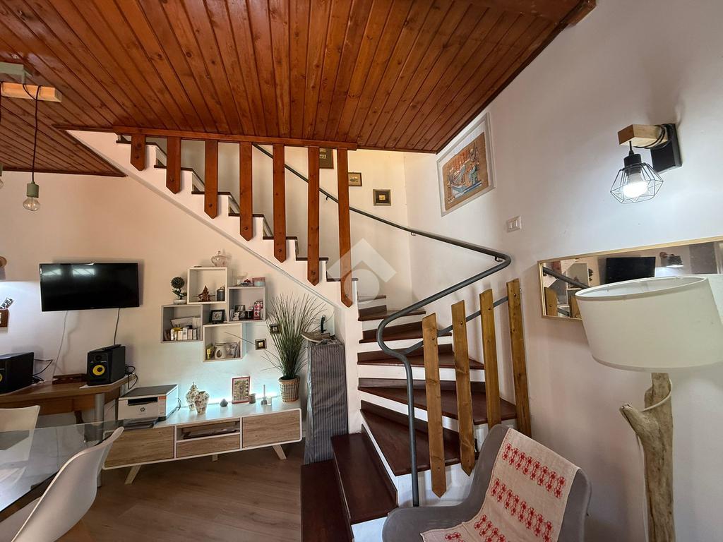 L’immobile gode di ingresso indipendente e si sviluppa su due livelli collegati da una scala interna, separando nettamente la zona giorno con la zona notte.