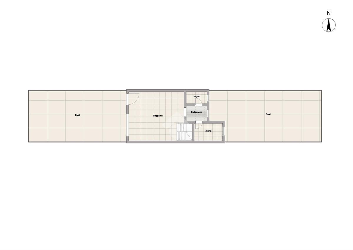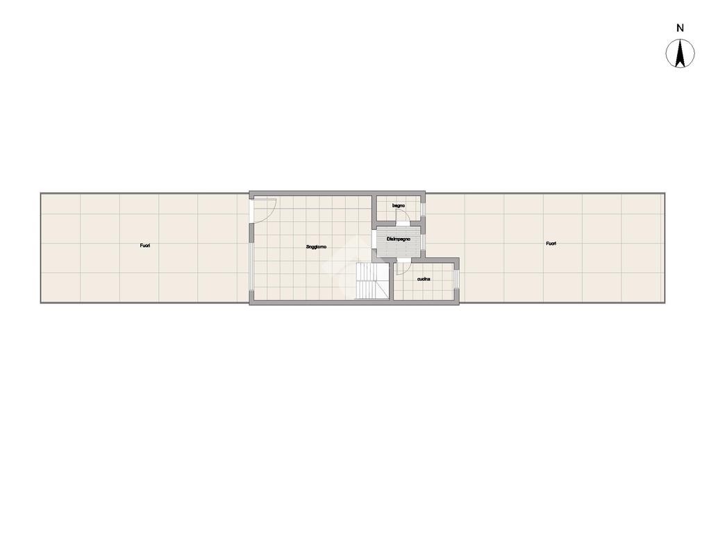 Il piano terra è dedicato interamente alla zona giorno, composta da un ampio salone, cucinotto separato con accesso al giardino decorato con un bellissimo manto verde e alberi da frutto ed infine bagno finestrato con box doccia.