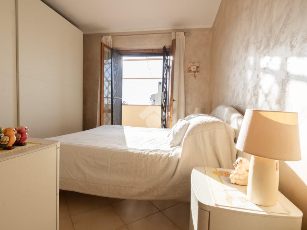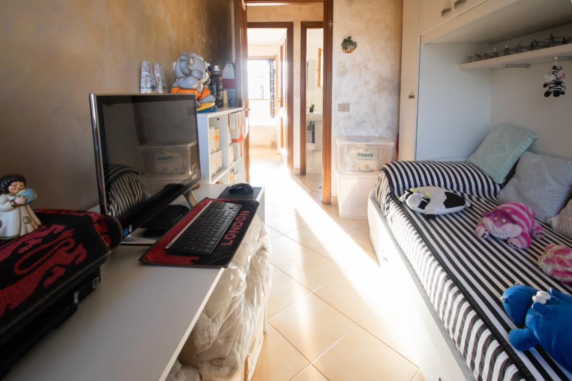 Al primo piano, la zona notte è divisa dal disimpegno, camera matrimoniale con accesso alla terrazza vista mare, camera media, cameretta con accesso al balcone e bagno finestrato con vasca.
